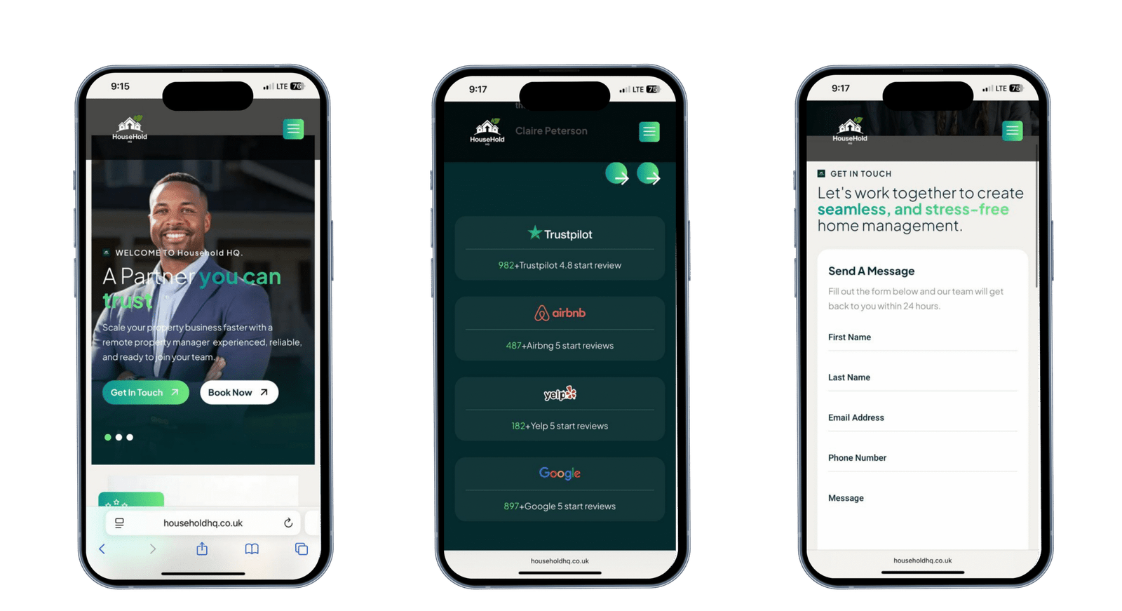 A site that positions them as a premium UK household management company