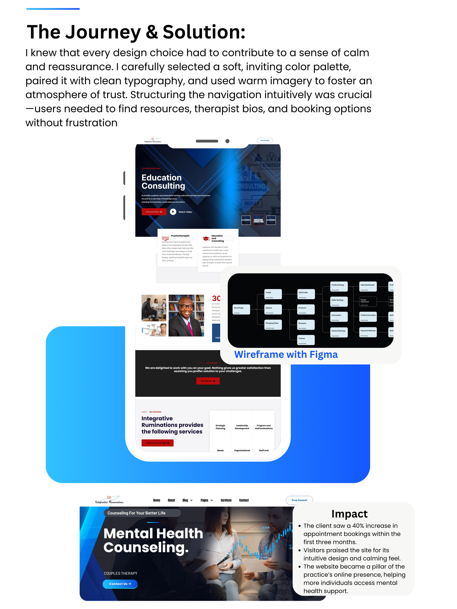 The website needed to be warm, inviting, and structured in a way that made seeking therapy feel less overwhelming.
