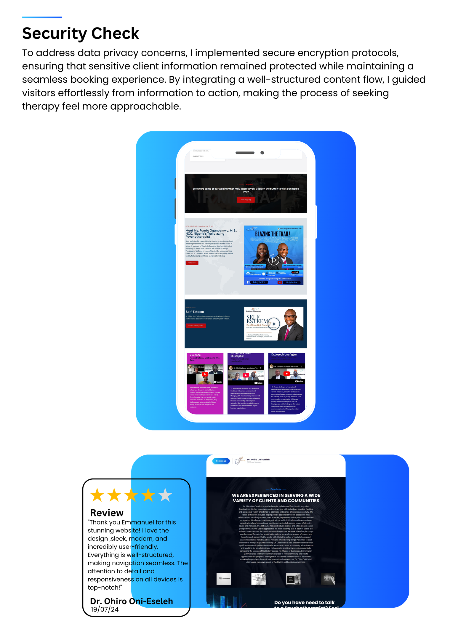 When we first connected with Dr. Ohiro Oni-Eseleh, He had a clear yet delicate vision—creating a safe digital space where individuals struggling with mental health challenges could find comfort, trust, and access to professional help. He spoke about integrating emotional intelligence, strategic management, and leadership skills to drive real transformation in individuals and organizations.
